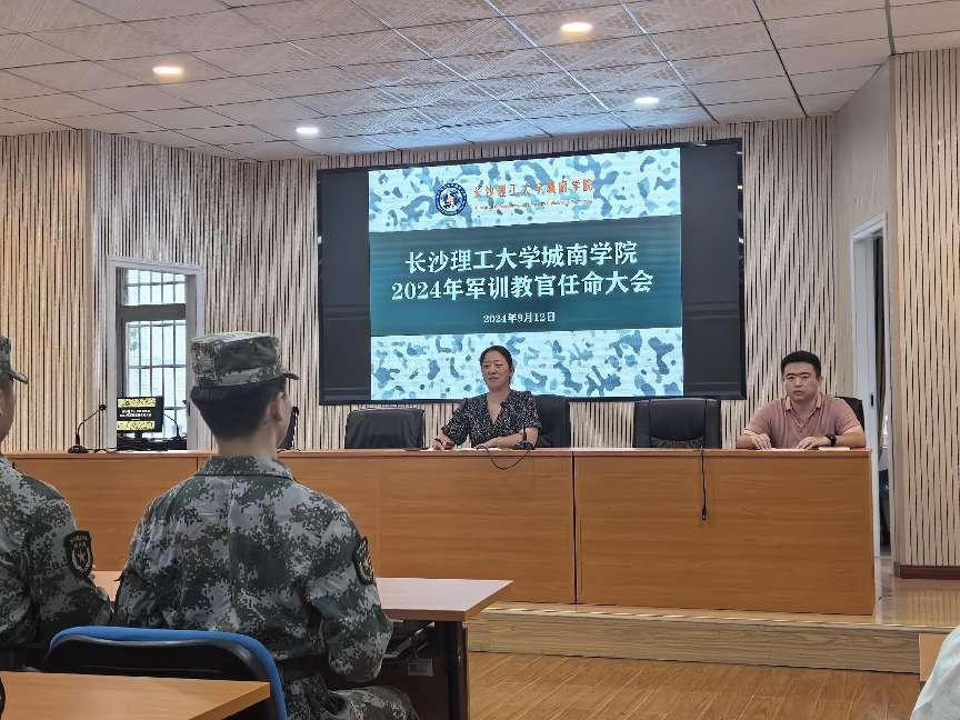城南学院2024年军训教官任命大会于9月12日10:00在2教201举行,城南学院党委副书记陶双、城南学院全体带训辅导员以及城南学院2024年军训全体带训教官参会。