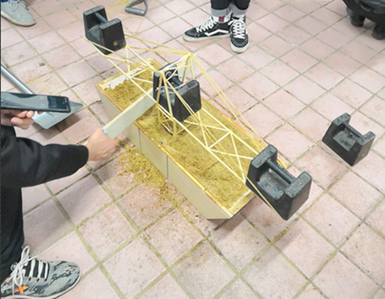 本届竞赛的赛题为“单塔斜拉桥结构设计、制作与加载试验”。在为期近一个月的模型设计与制作后,参赛选手满怀期待与好奇,小心翼翼将作品放在加载台上进行加载测试,比赛现场不断传来模型加载成功后的喜悦和观众的阵阵掌声。其中,城南学子尹思广、姜晓峰、邹鹏辉三人做出的模型,模型总体重量轻,跨度大,方案设计合理,他们以其独特的创新思维和丰富的力学知识让模型完美承受了两级共30千克重量的荷载,赢得了在场所有同学的掌声,最终以99.9分的总成绩荣获本届竞赛第一名兼最佳制作奖。
