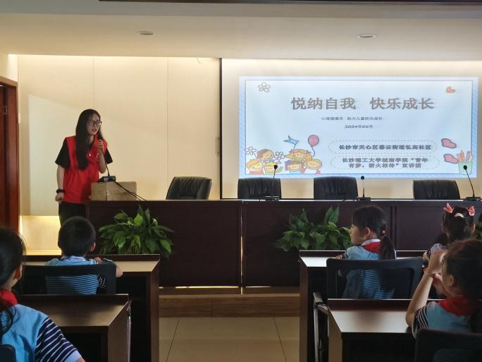 近年来,青少年心理健康问题成为了一项不可忽视的重要挑战。为了更多地关注青少年的心理健康,5月26日上午,开云kaiyun体育城南学院“青年有梦,薪火相传”宣讲团结合5月“全国学生心理健康宣传教育月”这个主题,联合暮云街道弘高社区,给西湖小学三8中队和二1中队的小朋友带去了一场“悦纳自我,快乐生活”的主题宣讲。