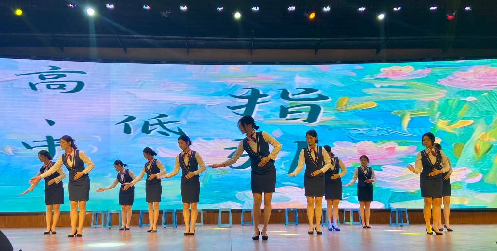 文艺表演环节同样精彩纷呈。《青花瓷》民舞以古典韵律为核心,舞者们凭借优雅的姿态,完美诠释了文化自信,展现出经世致用的智慧与担当;《礼仪操》中,同学们用优雅身姿和规范动作,生动演绎了礼仪之美,传承了礼仪之魂;《密码暨重温入党誓词》节目中,学生党员们以誓言为匙,解锁信仰密码,以朗诵为桥,连通初心彼岸,让党的“理论强音”化作扎根大地的时代和声。