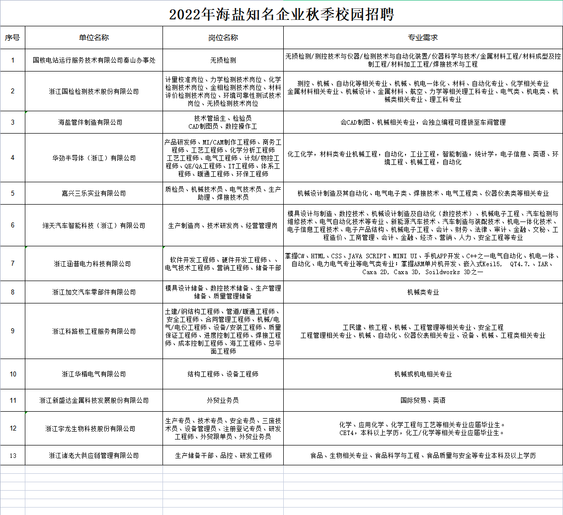 2022年海盐知名企业秋季校园招聘