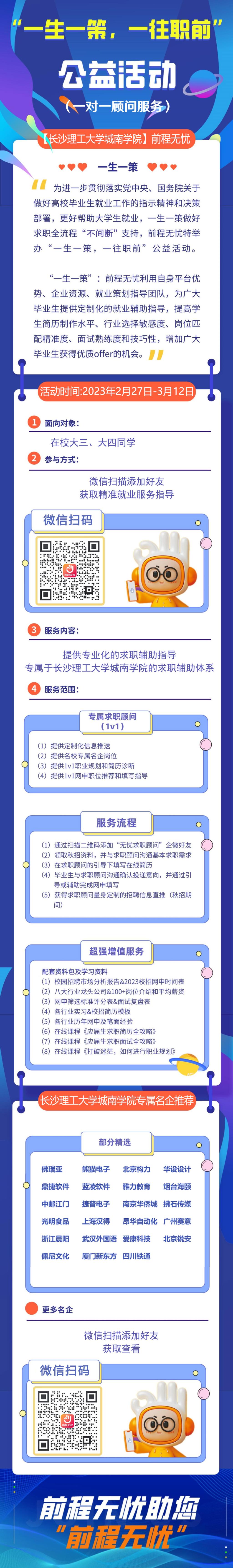 本次活动前程无忧利用自身平台优势、企业资源、就业策划指导团队,为大家提供定制化的就业辅助指导,提高学生简历制作水平、行业选择敏感度、岗位匹配精准度、面试熟练度和技巧性,同时增加广大毕业生获得优质offer的机会。