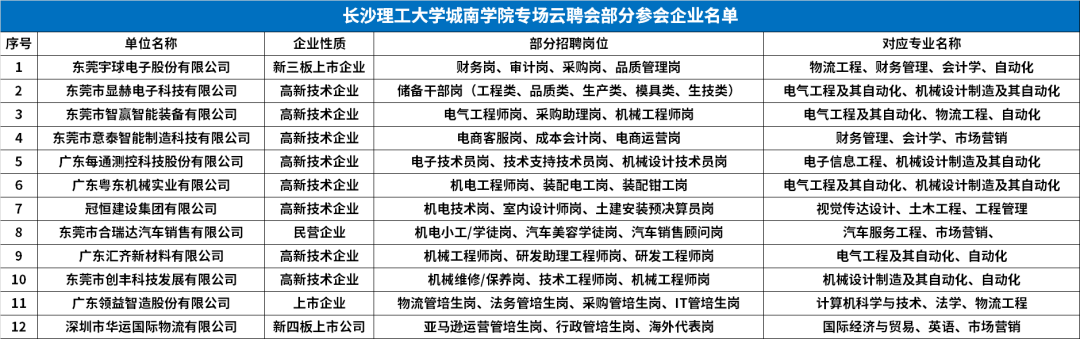 在本次云聘会中向长沙理工学院城南学院学子提供机械工程师、研发助理工程师、研发工程师等优质岗位。