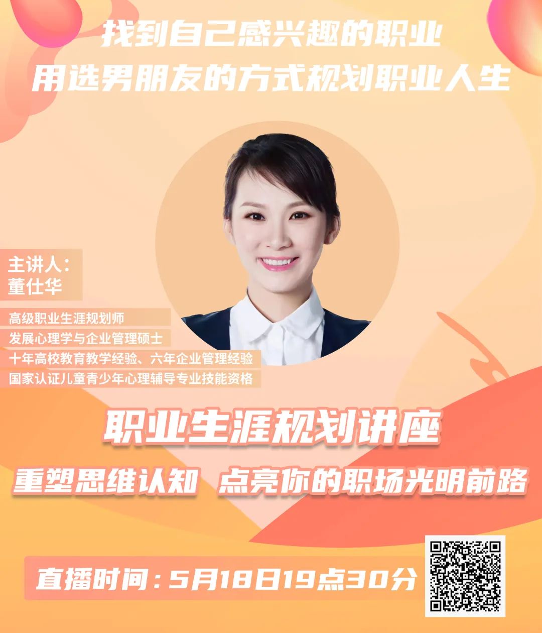 5月15日至5月31日粤港澳大湾区千企万岗促就业大型云聘会开云kaiyun体育城南学院专场即将开始领益智造、宇球电子、汇齐新材料等多家大湾区高新技术企业正在入场无论你想去国企还是上市名企都能在这里找到属于你的高薪好岗此外,博小招精心准备了就业指导系列公开课5月18日19点30分,在博思云课直播间广东科技学院就业教研室主任董仕华老师将用她十年高校教育与六年企业管理经验帮助你找到自己感兴趣的职业教你用选男朋友的方式规划职业人生