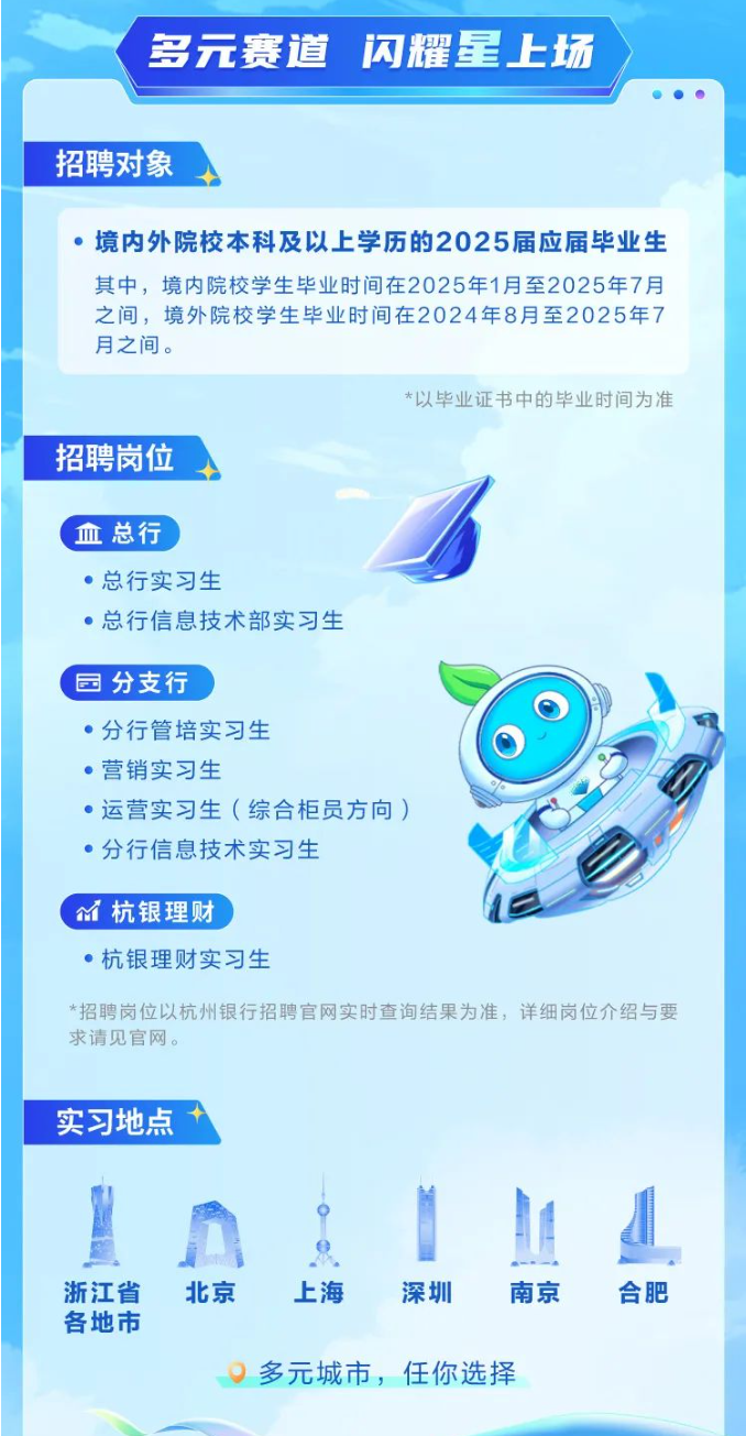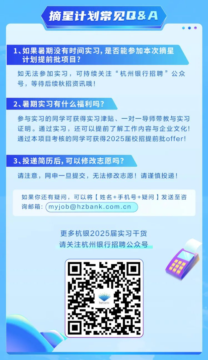 杭州银行2025届校招提前批暨“摘星计划”暑期实习生招聘