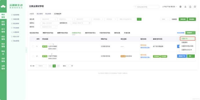 老师可选择已签约完成的学生,进行批量打印