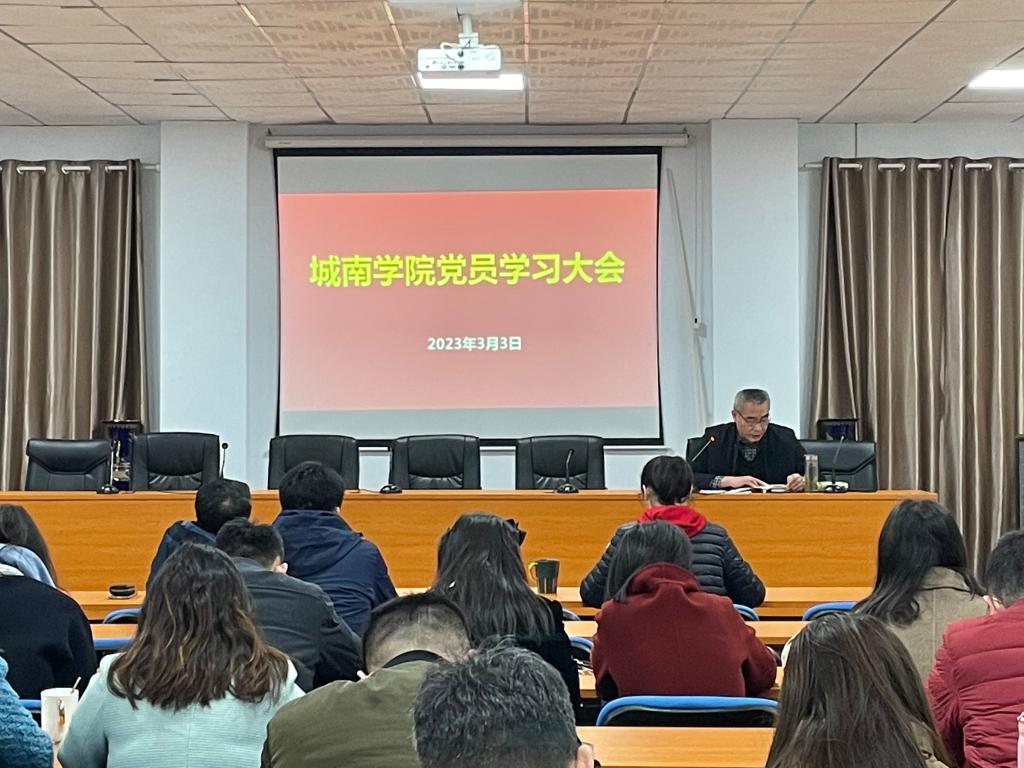 33日上午,城南学院党委在金盆岭2201召开全体教工党员大会,集中学习《中国共产党章程》,学院党委书记李修春领学。