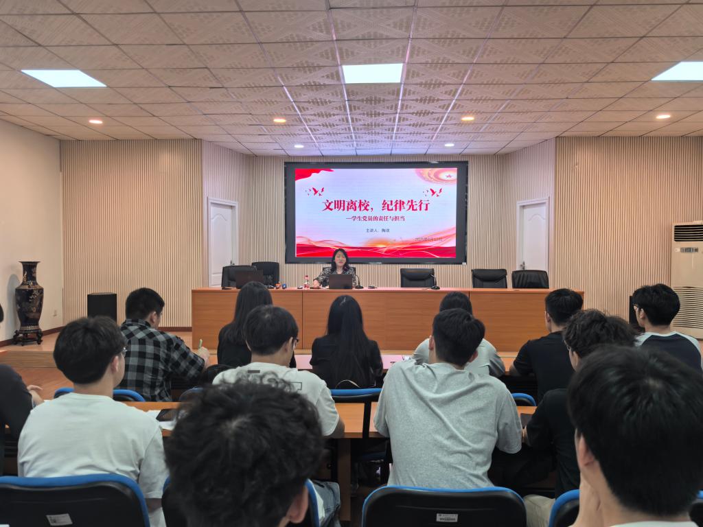 6月12日,城南学院能动汽机系党总支在2教大会议室组织全体毕业生党员开展"文明离校,纪律先行"专题党课教育活动,由学院党委副书记陶双授课。