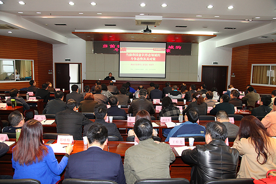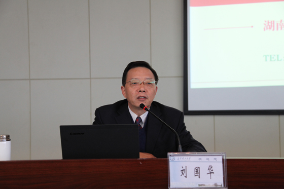 下午,湖南省委教育工委党校副校长、高校干部培训中心党总支书记刘国华教授应邀在开云官网云塘校区一办公楼九楼会议室为“湖南省高等学校第101期处级干部培训班”学员讲授第二课。省委教育工委党校高校干部培训中心教务部主任王青沅及培训班60多名学员参加了听课。
