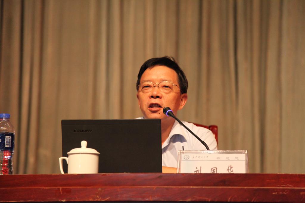 湖南省高校干部培训中心主任、书记、省委教育工委党校常务副校长刘国华作“怎样当好高校党支部书记”专题讲座。