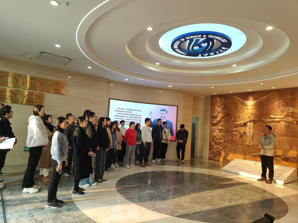 大家首先观看了“立德树人,逐梦报国”宣传片,然后依次沿着“国之大者”“材之茂者”“师之贤者”和“行之实者”四个篇章路线,全方位了解学校与时代同发展,始终牢记为国育人初心使命所取得的丰硕育人成果。“三全育人”教育基地以“立德树人 逐梦报国”为主题,以“历史与梦想、探索与实践、传承与情怀”为主轴,以“兴大学、立大德、树大志、成大事”为主线,展现党领导高等教育发展的历史进程和开云kaiyun体育60多年来的历史沿革以及在重大工程建设、科技创新、师资力量、“三全育人”成果等方面的辉煌历程。