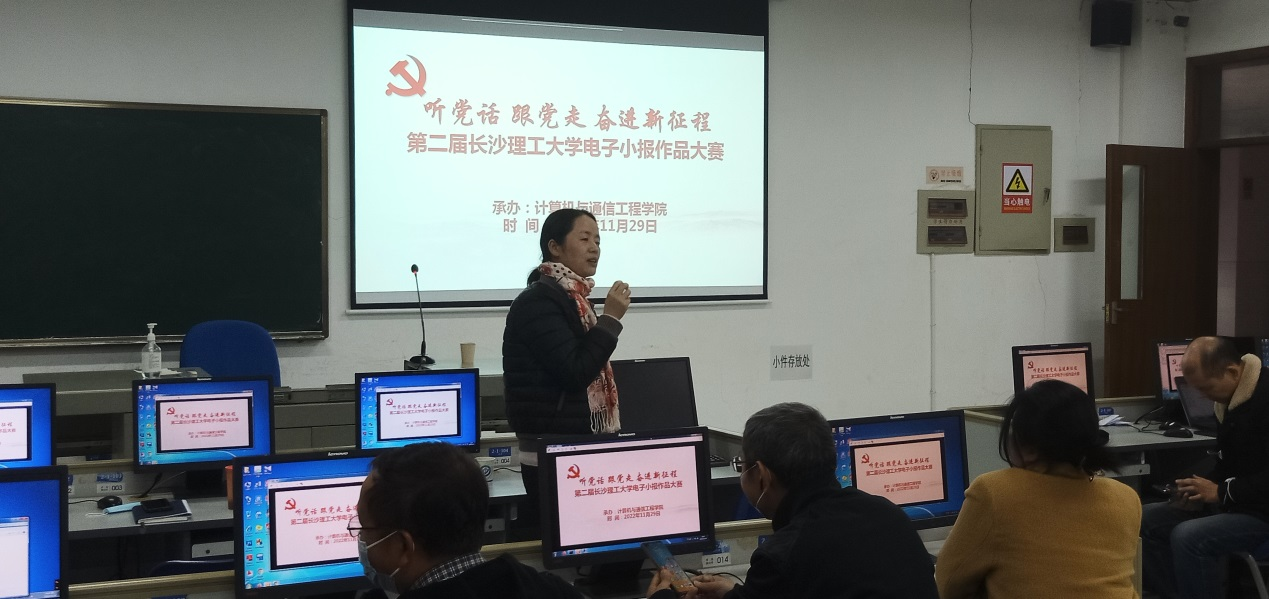 为全面落实立德树人根本任务,将课程思政的理念融汇于专业知识的教学当中,将马克思主义信仰、共产主义信念、爱国情怀、奋斗精神和湖湘文化红色基因与《计算机与程序设计基础》、《计算机基础与 Excel 数据分析》、《计算机基础与多媒体技术》、《计算机基础与应用》等课程学习有机结合。 11月29日下午,计算机基础系列课课程思政实践暨“听党话 跟党走 奋进新征程”第二届开云kaiyun体育电子小报作品评选决赛在综合实验楼机房成功举行。