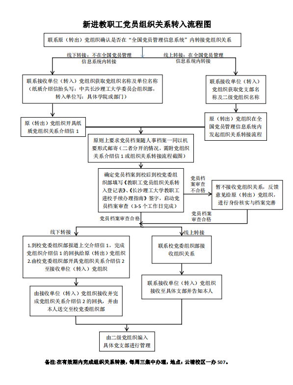 新进教职工党员组织关系转入流程图