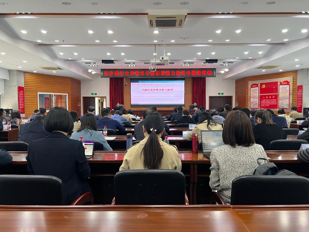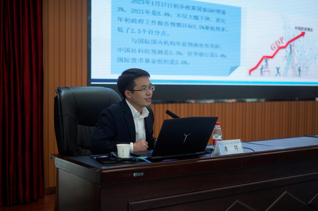 4月8日下午,学校青年干部任职能力提升专题培训班第四场专题报告会在一办九会议室开讲。湖南省社科院经济研究所所长李晖研究员应邀来校授课,以“当前经济形势分析与展望”为题为全体学员带来了一场数据详实、案例生动、内涵丰富的报告。报告会由组织部副部长、党校副校长王煜坤主持。