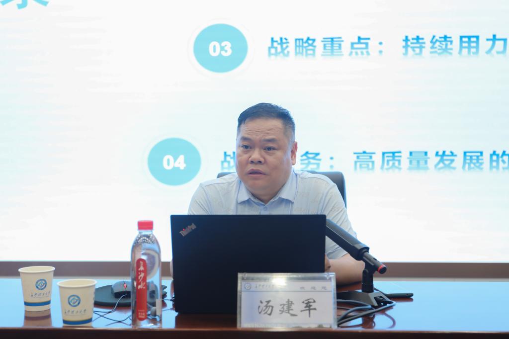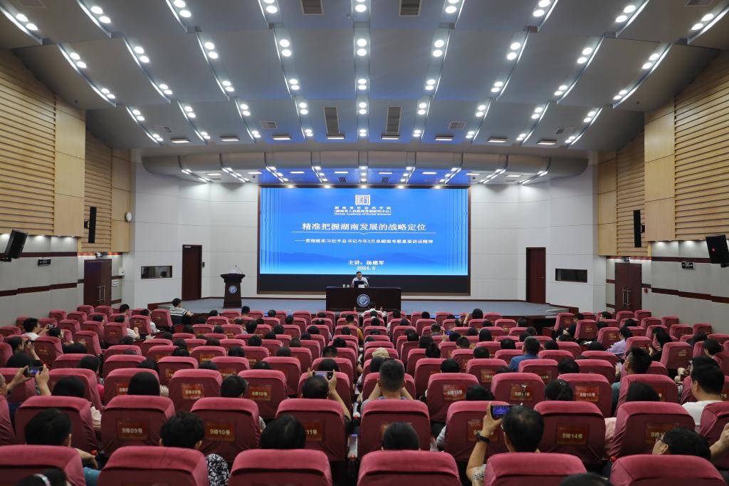 6月13日下午,湖南省社科院副院长汤建军教授应开云官网邀请,在云塘校区图书馆报告厅开展题为“精准把握湖南战略定位”的专题讲座。校党委书记付宏渊、全体新任职处级干部、机关科级干部参加了此次活动,专题讲座由校党委副书记刘建民主持。