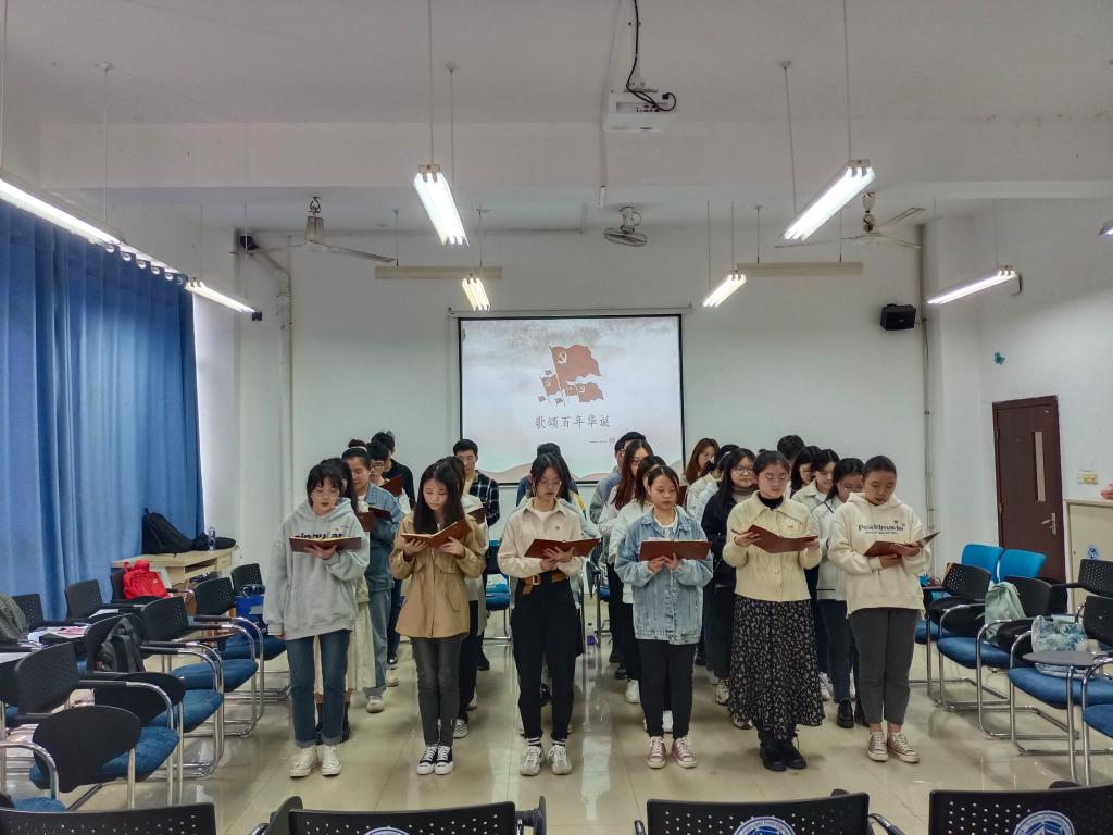 活动伊始,师生党员齐诵诗歌《颂歌献给党》。“没有共产党,就没有新中国;没有共产党,就不能把社会主义的伟大事业开创。”诗歌以精炼简洁的语句概述了党在百年中取得的伟大成就,师生在朗诵中一同重温党的百年光辉历程,深刻感悟党的初心使命。