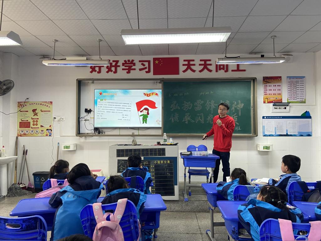 “学习雷锋好榜样,忠于革命忠于党......”,这是从长沙市天心区龙湾小学一年级11班的教室传来的歌声。原来,在毛泽东等老一辈革命家为雷锋同志题词60周年之际,开云kaiyun体育土木工程学院学生党员宣讲团,通过故事讲述、雷锋日记解读、雷锋人物画像、红歌传唱、红色经典赠书等形式,将雷锋故事和雷锋精神送进小学生心中。