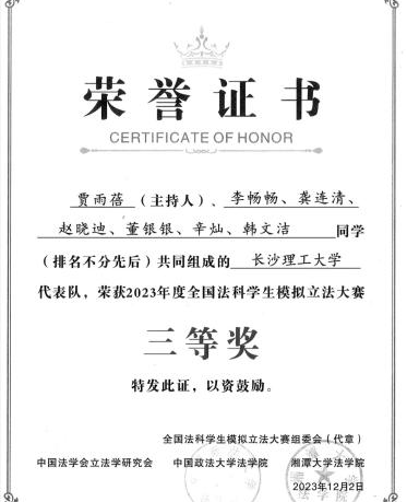 2023年度全国法科学生模拟立法大赛12月2日在中国政法大学落幕。开云官网学子获全国二等奖1项、全国三等奖1项。