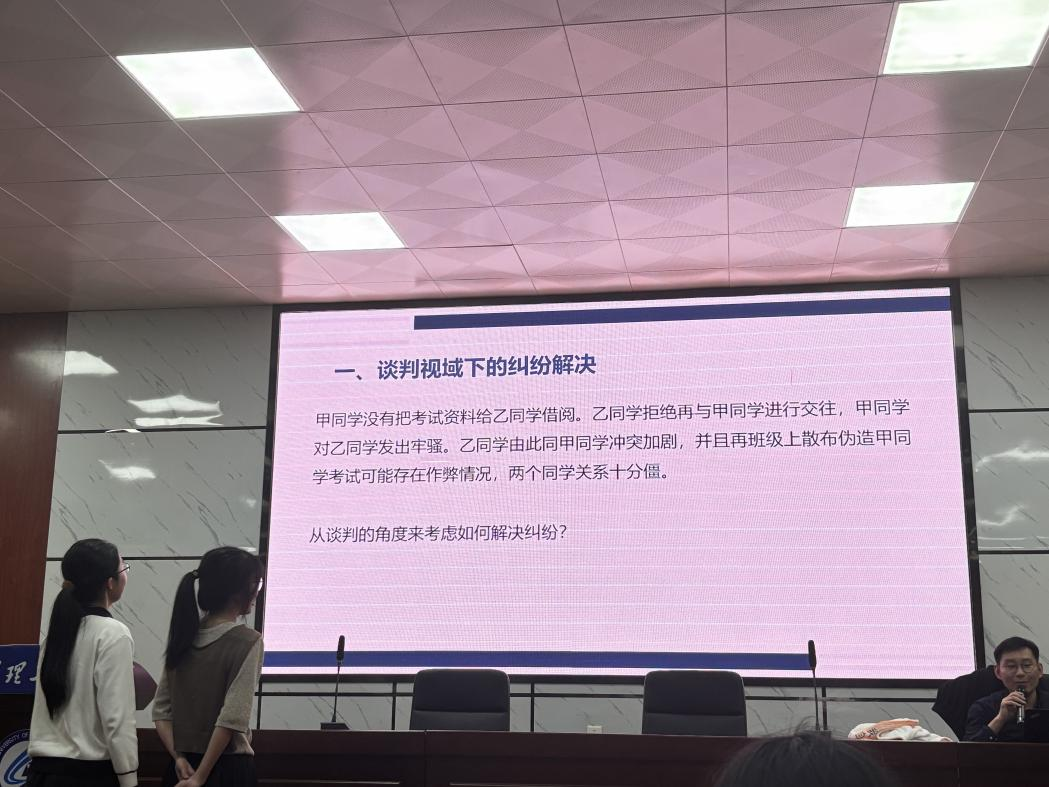 最后,在互动交流环节,孔凡琛老师请两位同学运用所讲的纠纷谈判技巧进行“邻人纠纷”的情景演绎,在场同学都获益匪浅。