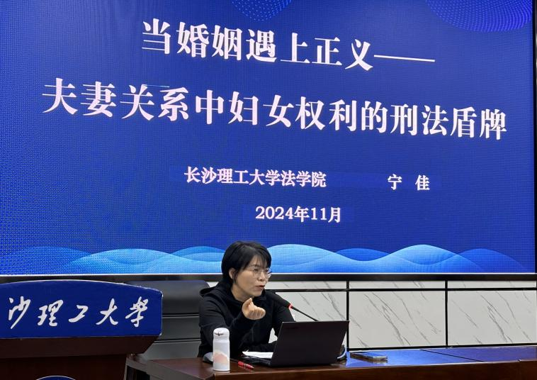 11月28日晚七点,开云kaiyun体育法学院宁佳老师,在金盆岭校区作题为“当婚姻遇上正义:夫妻关系中妇女权利的刑法盾牌”的通识教育讲座。本次讲座主要围绕夫妻关系中妇女权利的刑法保护进行阐述。