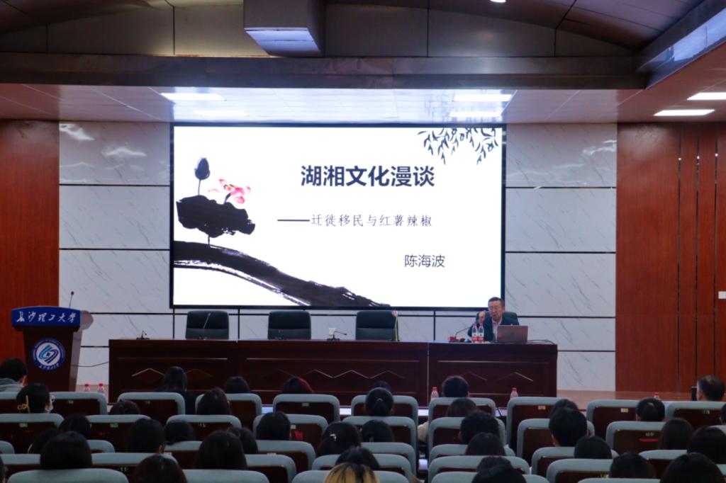 最后,在湖湘文化的价值传承方面,陈海波讲述了中华传统文化的重要性,由此提到了解学习湖湘文化对拓宽知识修养、培养良好的道德品格以及树立正确的三观具有十分重要的现实意义,鼓励同学们传承学习湖湘文化。