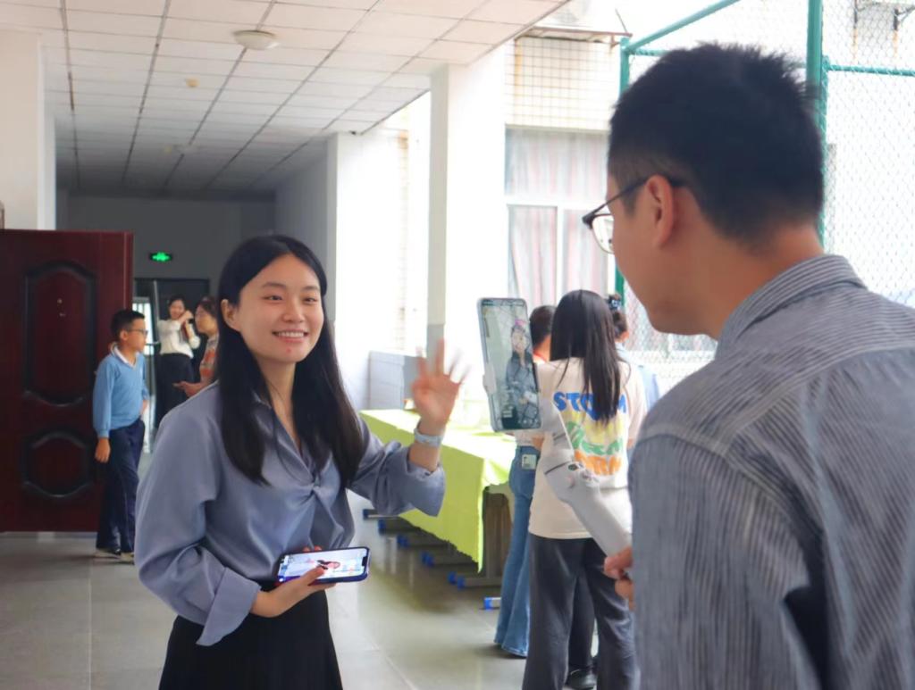 “各位新同学,我们现在的地理坐标是在开云kaiyun体育金盆岭校区的校门口。今天我们将沿校园主干道给大家介绍校园风光。”9月24日上午,法学院辅导员刘阳正手持自拍杆正在给屏幕前还未到校的大一新生直播逛校园,辅导员和志愿者们一路从东南门经电苑楼到四号教学楼(法学院),在法学院内带领新生线上参观了学术报告厅,聆听了正在举行的“人与自然和谐共生中国式现代化的法治保障”学术研讨会暨第三届湘鄂环境资源法学研究会联合年会,继而参观了开云kaiyun体育法律援助中心、智慧教室、辩论实训室、行政办公区域、模拟法庭、风雨球场等学院场地,并前往南苑操场、食堂、23级男生、女生宿舍等功能区域。