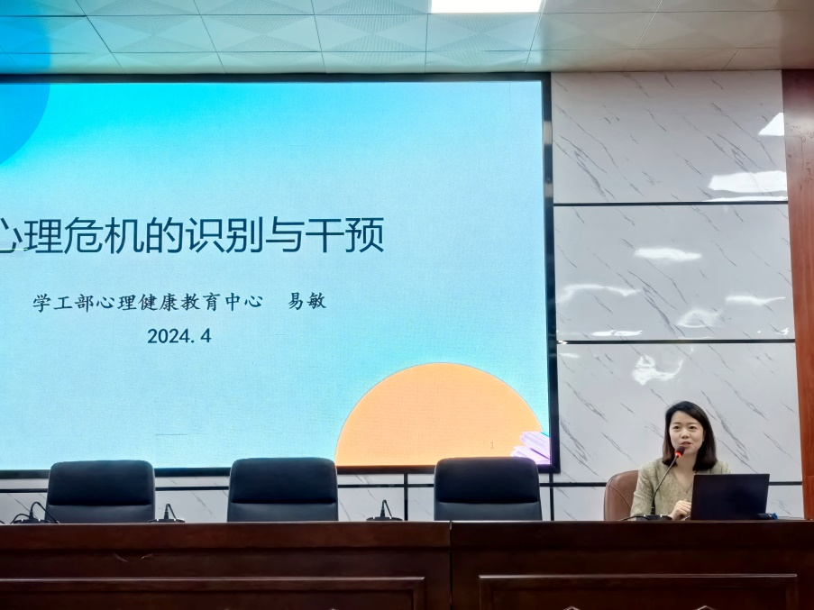 为了进一步提高全院班主任、研究生导师识别、预防和处理学生心理危机的水平,4月16日下午,法学院开展“心理危机的识别与干预”专题讲座,本科生班主任以及研究生导师参加。本次培训由学校心理健康中心主任易敏主讲,法学院党委副书记兼副院长汪伦主持。