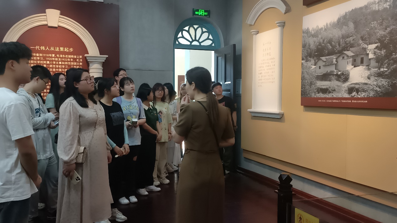 初入展馆,“要做人民的先生,先做人民的学生”的校训格外引人注目是毛泽东同志1950年为母校所题。毛泽东曾在湖南第一师范学院度过8个春秋,实现了由青年学生、教员到革命家的转变。翻开学院的红色历史,峥嵘岁月中走出了毛泽东、蔡和森、何叔衡、任弼时、李维汉等一大批革命先辈。在讲解员的引导下,学生党员们参观了各个展馆,聆听着先辈们的栉风沐雨,随着历史的足迹感受着从“走进一师”到“走进一大”的伟人蜕变,也领悟着艰难岁月里的沧桑与磨炼