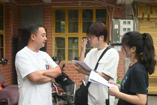 (图为暑期专业实践团队成员在走访当地居民做问卷调查)