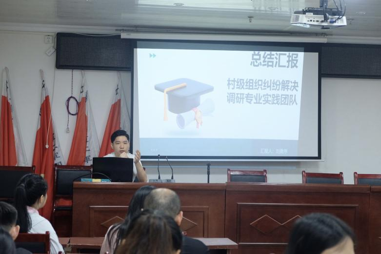 本次总结大会由赴桑植县深入实践的四支团队负责人就各自团队的调研成果进行了全面而深刻的总结。四支团队紧密围绕桑植县当前的法治实践情况,分别从四大关键领域——村级组织纠纷解决机制、秸秆露天禁烧的监管法律机制、农村互助养老,以及非规模化畜禽养殖污染防治监管机制出发,进行了深入细致的走访调研。