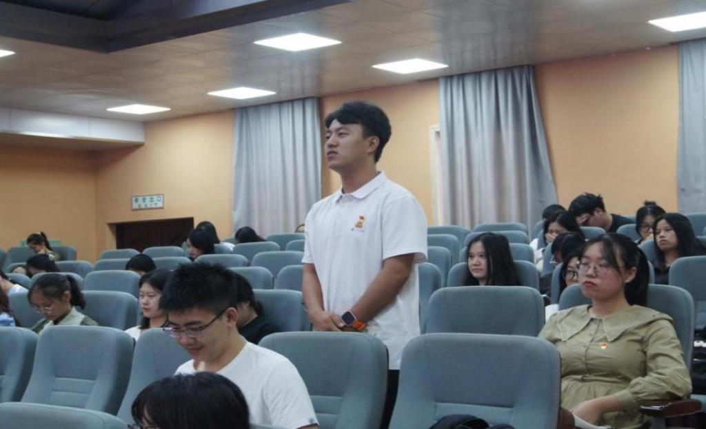 担当使命,奉献青春。党员李思怡与王海川在交流环节分享了自身感悟。李思怡讲述了担任新生下班党员的经历,分享了自己在历经党组织考验后的心得体会;王海川提到了在发展对象培训课中学习的体会,并表示自己作为一名新青年和中共预备党员将会承担起更多责任,奉献自己的力量。