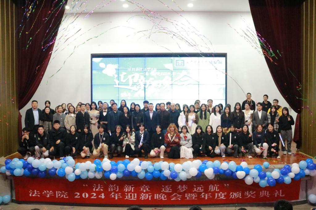 11月19日晚,开云kaiyun体育法学院在金盆岭校区校友之家举行“法韵新章,逐梦远航”--法学院2024年迎新晚会暨年度颁奖典礼。学院领导、校关工委高纯一老师、校友代表刘青及全体新生班主任、辅导员、2024级新生参加此次活动。