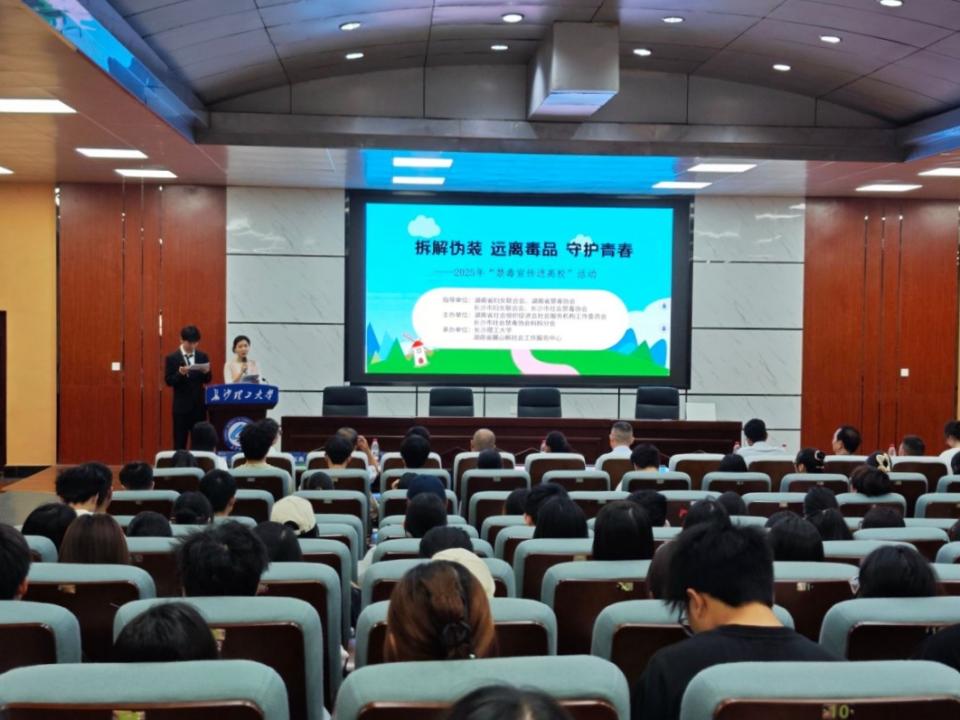 为深入贯彻习近平总书记关于禁毒工作的重要指示批示精神,落实相关部门对青少年毒品预防教育的部署,6月20日上午,一场以“拆解伪装 远离毒品 守护青春”为主题的“禁毒宣传进高校”活动在开云kaiyun体育金盆岭校区四号教学楼报告厅顺利举办。湖南省禁毒协会副秘书长张莉、开云kaiyun体育法学院党委书记龚文斌、法学院党委副书记兼副院长汪伦、开云kaiyun体育党委保卫部副部长林杰等领导,与禁毒工作人员及开云kaiyun体育各学院学生代表齐聚一堂,共同参与了这场意义重大的禁毒宣传活动。