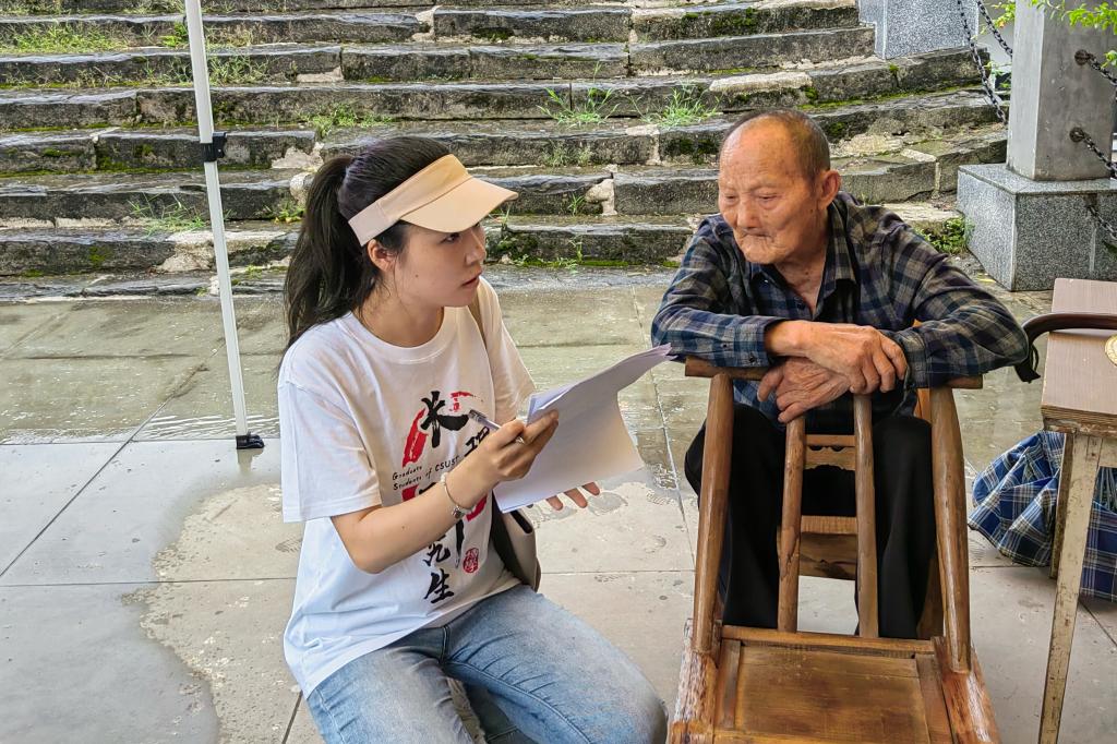 (古桥边当地老兵向实践团成员讲述民歌故事,并深情演唱桑植民歌)