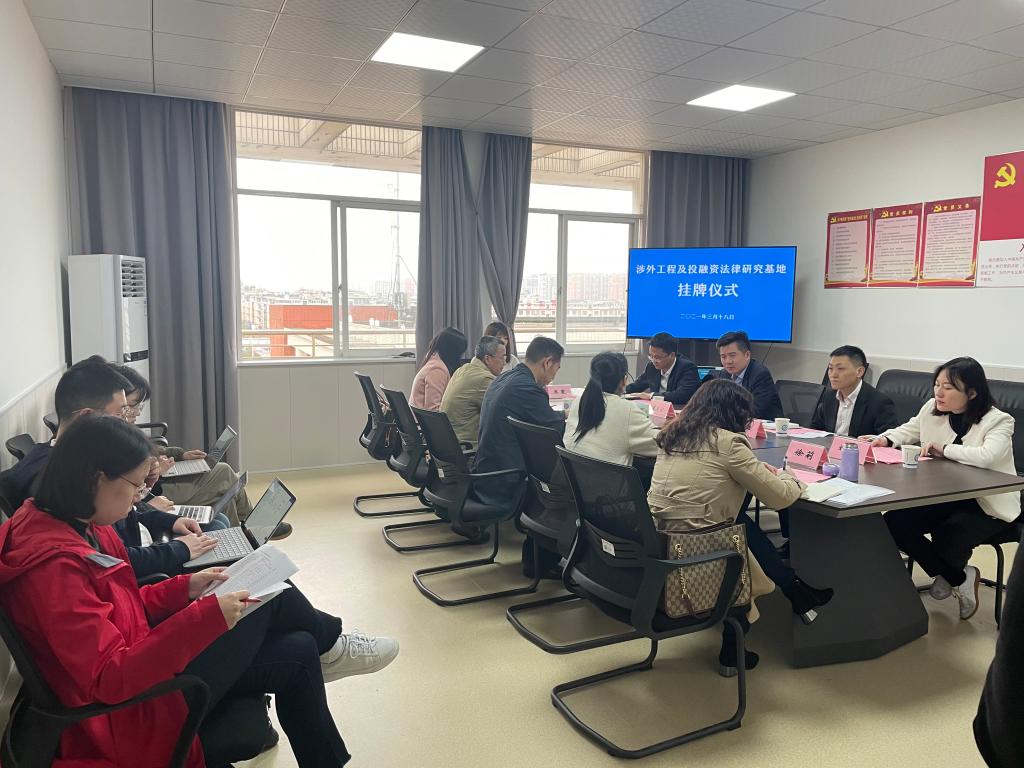2021年3月18日下午,涉外工程及投融资法律研究基地挂牌仪式在开云kaiyun体育云塘校区文科楼C区606举行。建融资产党总支书记、董事长蔡炎宏,湖南省“一带一路”基金公司董事、副总经理曾小雄等一行4人,我院张敏纯副院长(主持工作)、王新生教授、徐莉副教授等老师参加会议,田兴洪书记主持仪式。