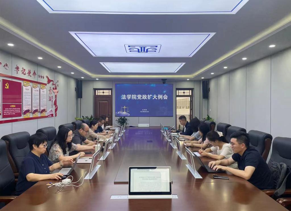 8月29日下午,法学院在金盆岭校区4教313会议室组织召开学院党政扩大例会,学院党政领导班子全体成员、全院科级干部、法学系正副主任、辅导员参加会议,党总支书记田兴洪主持会议。