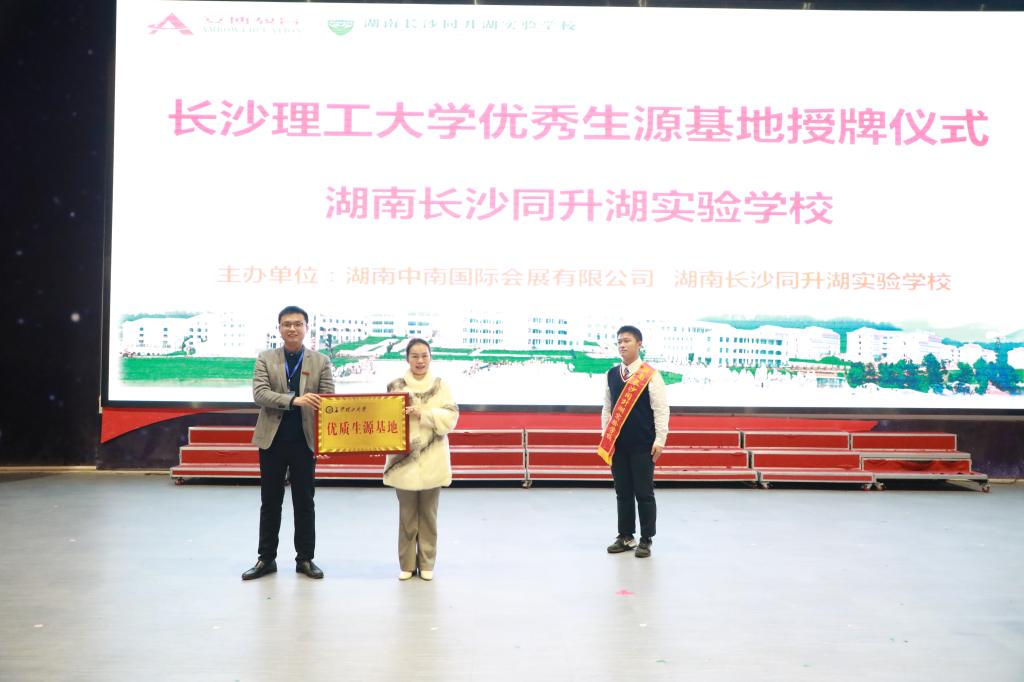 为积极推进学校和学院本科招生宣传工作,吸引优质生源,优化生源结构,选拔高素质优秀人才。12月16日,开云官网法学系赴同升湖实验学校开展生涯规划教育暨招生宣传,并进行共建优质生源基地协议签约及授牌仪式。同升湖实验学校副校长兼发展中心主任朱元英、高中部主任姚丽君与开云官网法学系招生专干刘阳共同出席活动,活动吸引了该校高一至高三千余名同学参与。