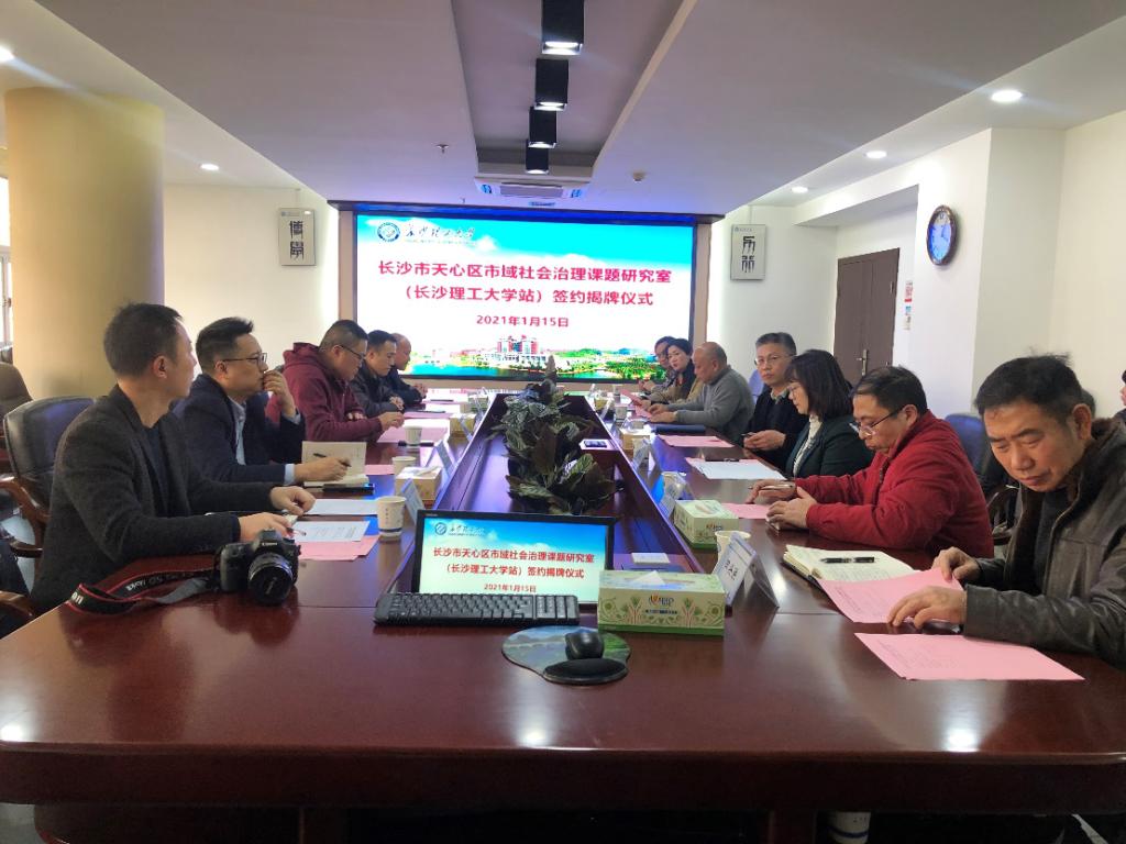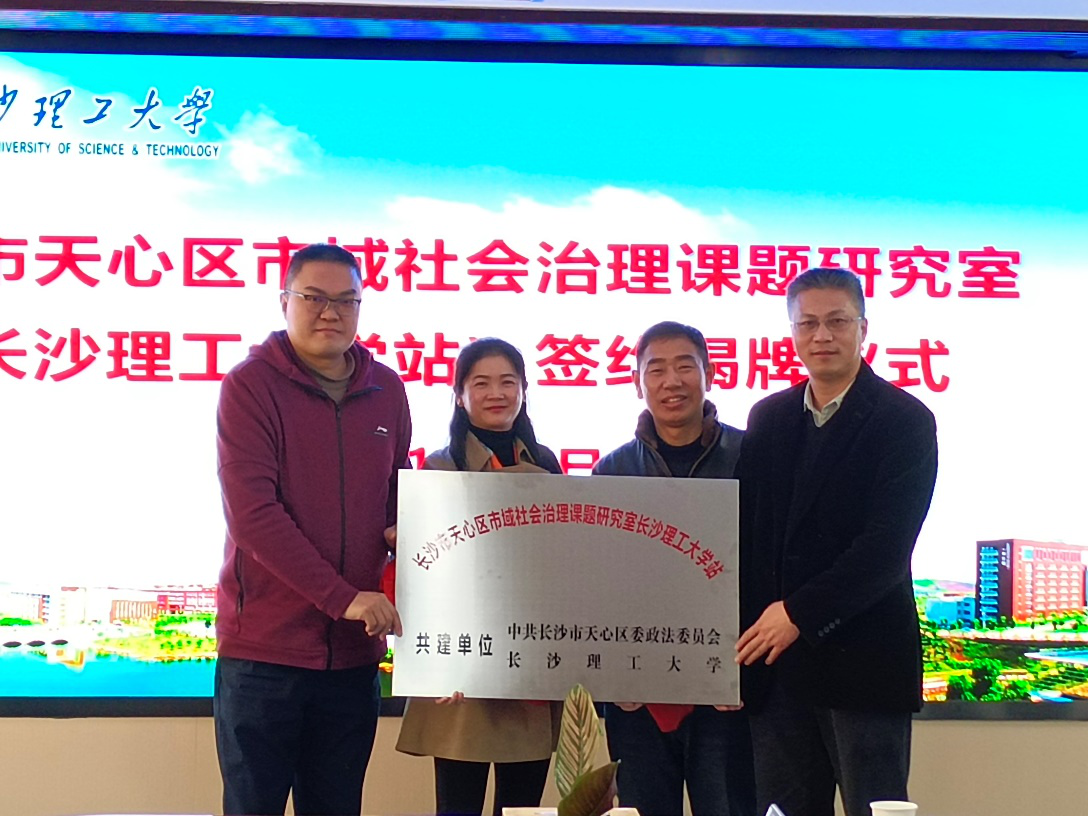 1月15日,“长沙市天心区市域社会治理课题研究室(开云kaiyun体育站)”签约揭牌仪式在开云官网举行。湖南省天心区政法委副书记陈国其,副校长蒋昌波出席,党政办主任周艳红主持仪式。