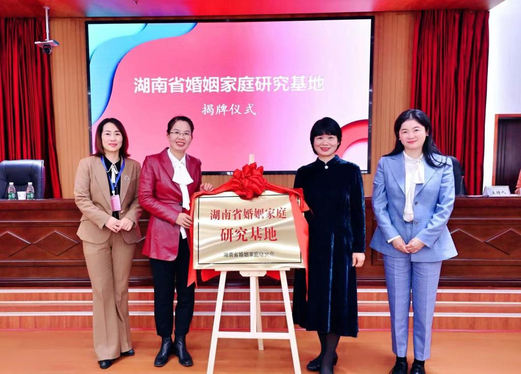 会上,还举行了“湖南省婚姻家庭研究基地”揭牌仪式,黄芳、蒋璟萍、方琼、张敏纯共同为研究基地揭牌。