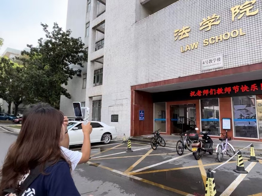 下班党员和主要学生干部组成的直播团队手持自拍杆金盆岭校区东南门出发,途径电苑楼、图书馆到达四号教学楼法学院)。在法学院内,学院党委副书记汪伦、学工办主任孙佳乐、新生辅导员兰贵辉等线上与新生进行了亲切地交流互动。随后,直播团队带领新生参观了学院法律援助中心、学术报告厅、羽毛球场、行政办公区、智慧教室、模拟法庭等场所,并一路前往西苑食堂及2024级新生即将入住的新生宿舍新生迫切希望了解的重要地点
