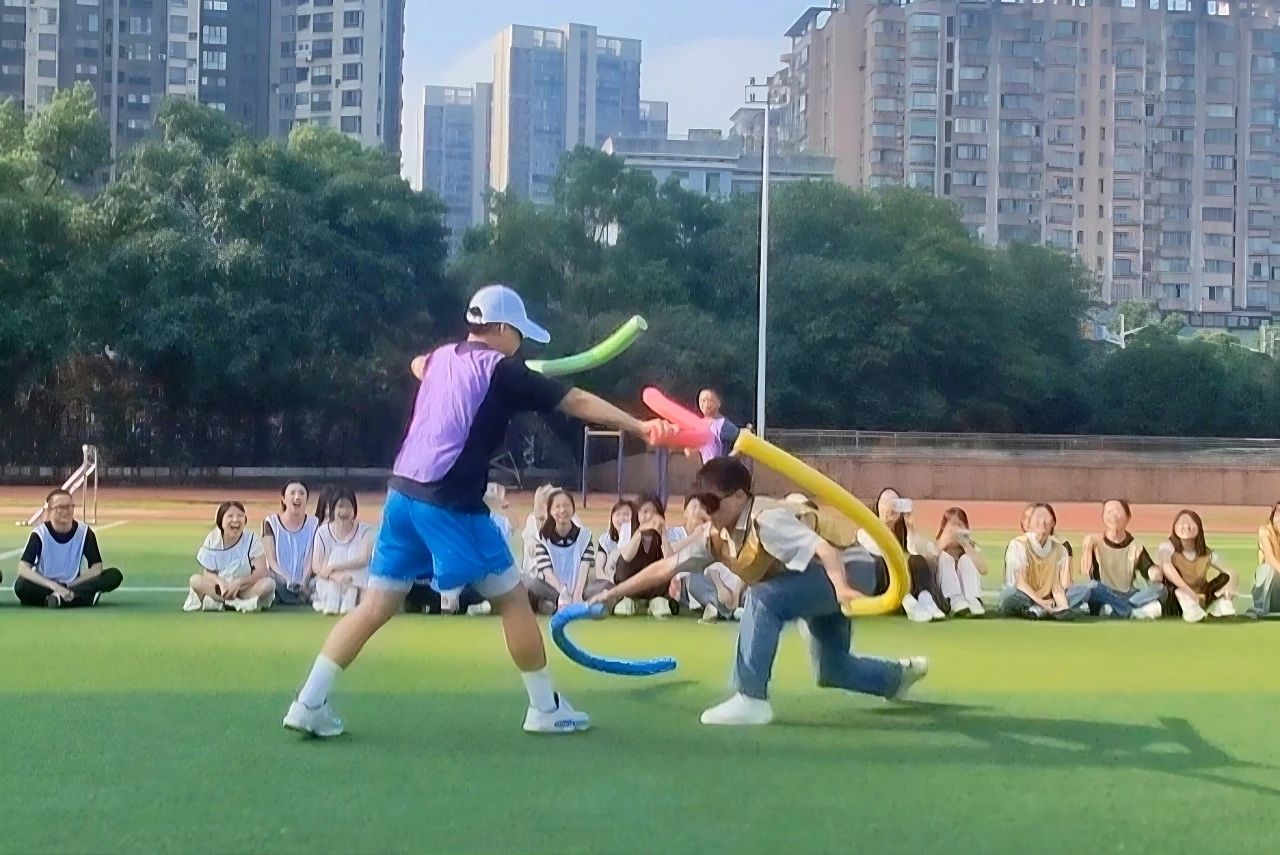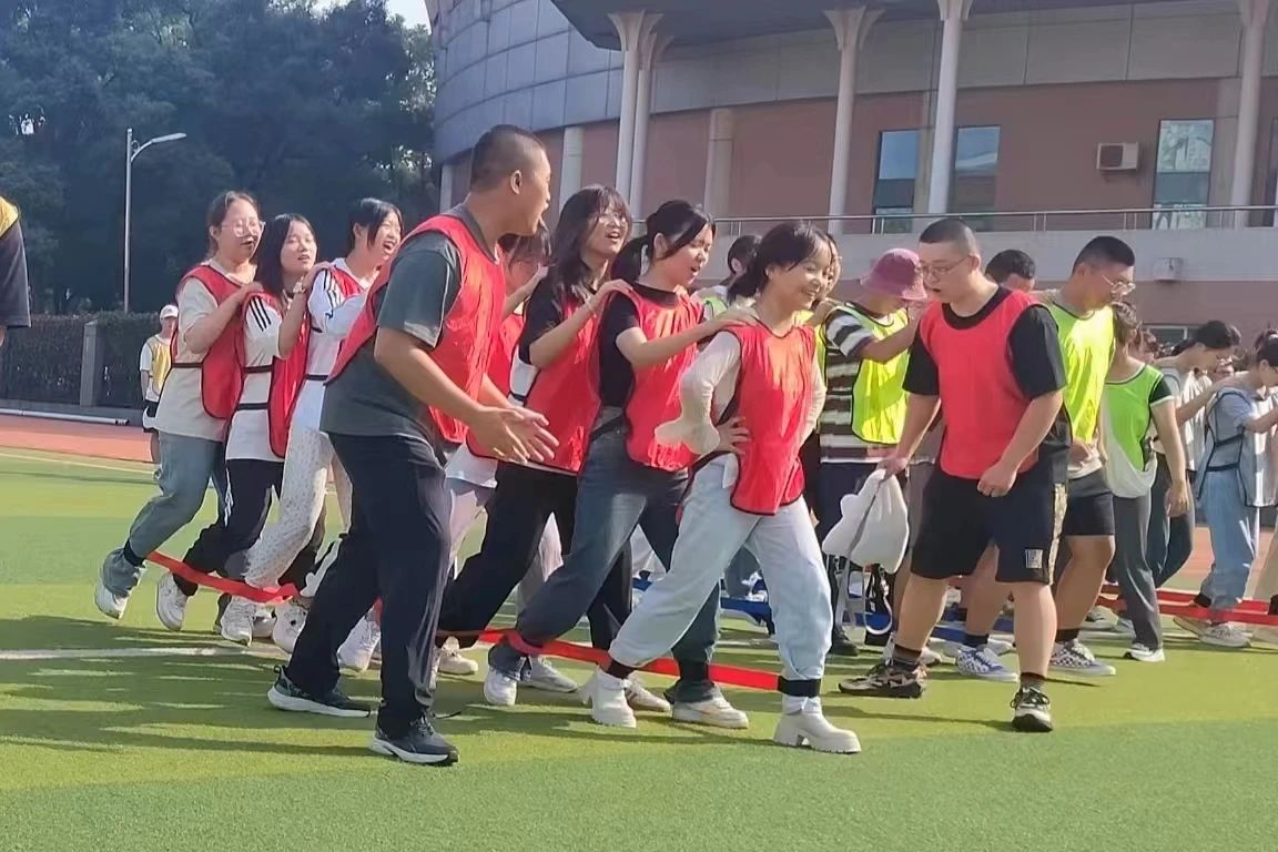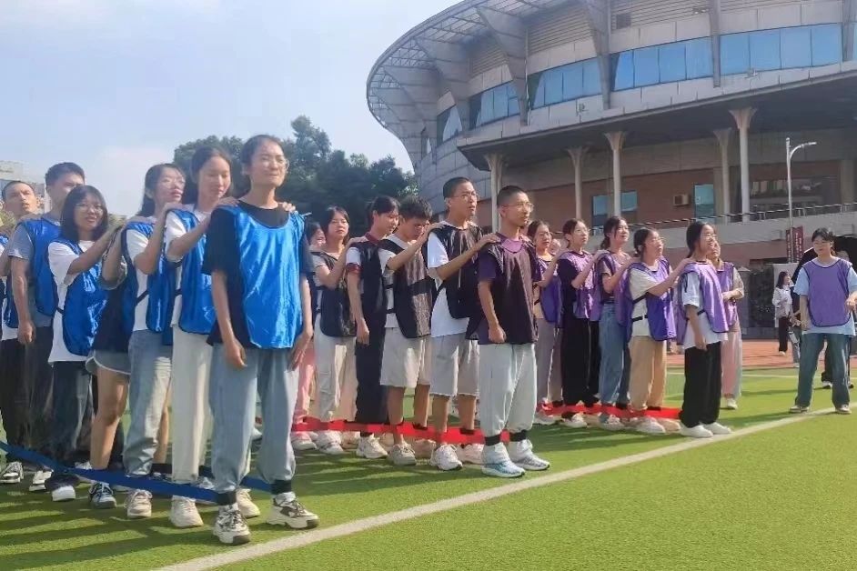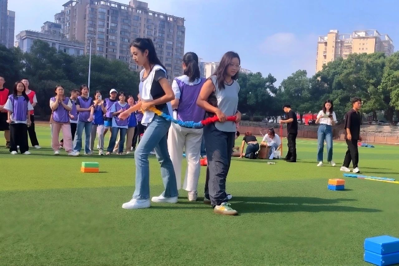随着晨曦初现,新生们被随机分为八支队伍,经过短暂的商议,各组迅速推选组长,商议队名和口号,投入到“蒙眼打人”、“扔沙包”、“绑腿并行”、“碰杆游戏”等充满趣味与挑战的破冰活动中。