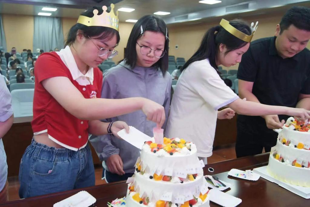 当蛋糕被缓缓切开,每一位新生领到有自己姓名的专属蛋糕,甜蜜的香气瞬间弥漫了整个报告厅。