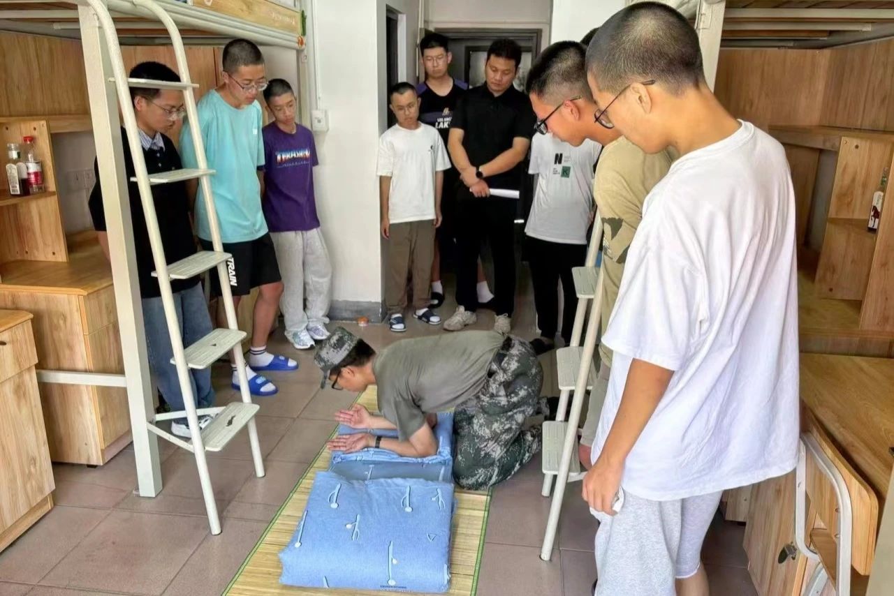 下午三点,兰贵辉与军训教官一同深入西一、西三新生宿舍,一一查看、指导新生宿舍内务卫生情况,并现场进行了叠被子示范教学。教官们细致入微的检查指导、手手把手的教学以及谆谆教导,让新生们深刻理解了良好的宿舍环境、过硬的自理能力和自律意识对于大学学习生活的重要性。