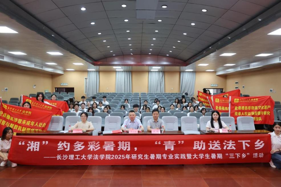 7月20日下午,法学院在四号教学楼学术报告厅举行2025年研究生暑期专业实践暨大学生暑期“三下乡”活动出征仪式,院党委书记龚文斌、指导教师刘娉、研究生辅导员曾宇欣及全体实践团队成员参加,仪式由院党委副书记汪伦主持。