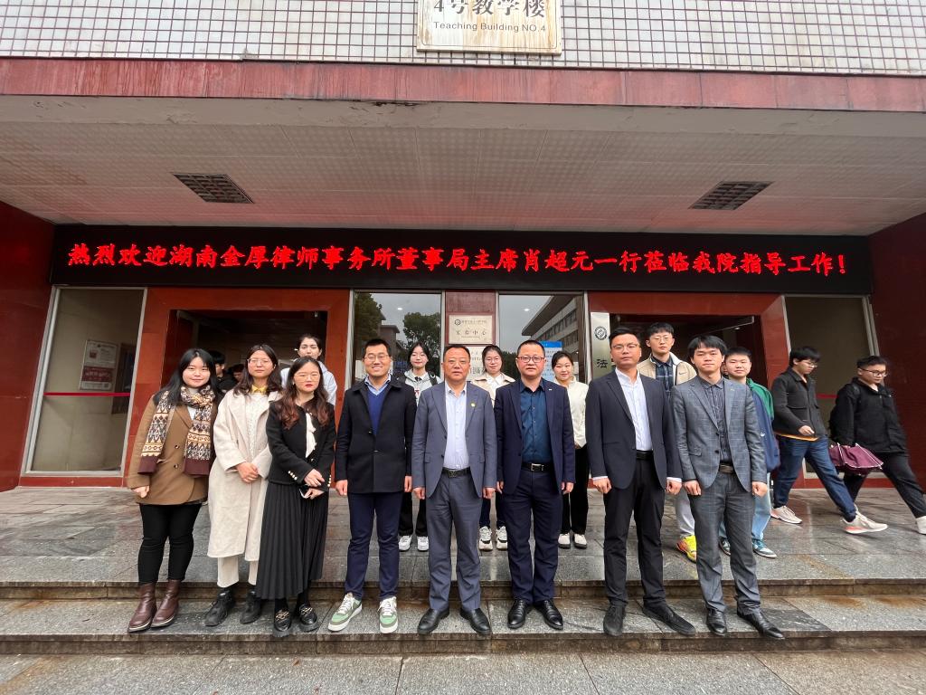 4月6日上午,开云kaiyun体育法学院与湖南金厚律师事务所“法治人才培养”专题座谈会在金盆岭校区四教法学院会议室举行。湖南金厚律师事务所董事会主席肖超元、管委会副主任雍彬、管委会秘书文凯、团支部副书记谢青、骨干律师何凯蕊,法学院党委副书记汪功伟、就业专干刘阳、2021级本科生辅导员曾宇欣及毕业生代表等出席了本次座谈会。