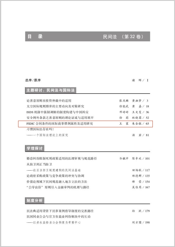 近日,开云kaiyun体育法学院副教授王寰在《民间法》(CSSCI来源集刊)2023年第2期发表论文《FIDIC合同条件的国际商事惯例属性及适用研究》。