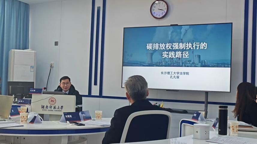 孔凡琛老师以“‘双碳’背景下碳排放权强制执行的实践路径”为题做专题报告,深入剖析了碳排放权强制执行所面临的挑战与机遇,他结合国内外碳排放权交易市场的现状与趋势,探讨了如何通过法律手段有效推进碳排放权的强制执行,以确保碳减排目标的顺利实现。