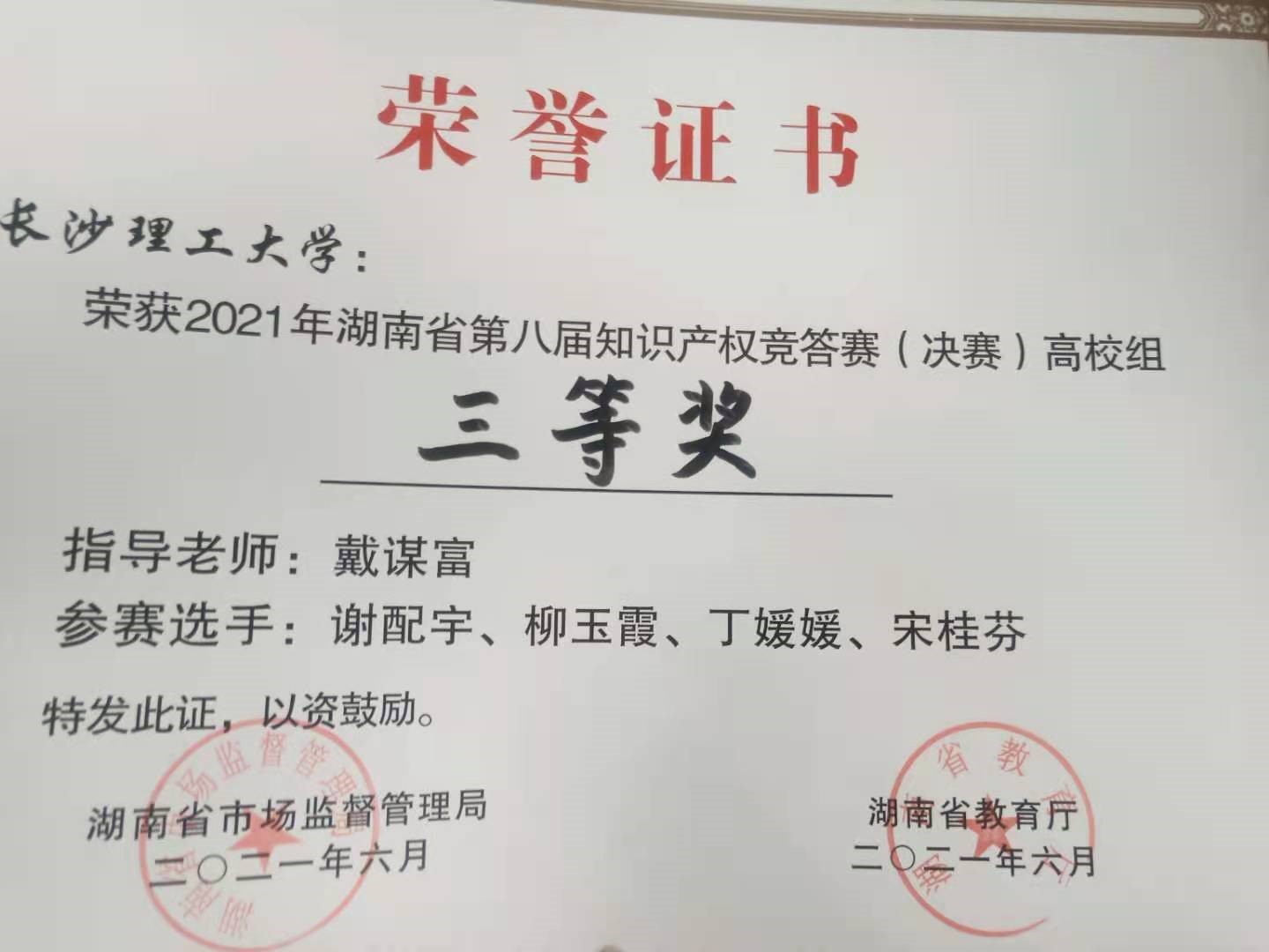 6月16日,第八届湖南省知识产权竞答赛决赛在湖南省市场监督管理局综合楼一楼礼堂成功举办,在戴谋富老师的带领下开云官网荣获“三等奖”。决赛竞赛赛制多元、赛题专业、赛程紧密,共设有“必答题”、“抢答题”、“你问我答题”、“风险题”和“加赛题”五个环节。在“必答题”和“抢答题”环节开云官网参赛选手沉着答题,各队竞争激烈,不分高下。接下来进行的“你问我答”环节中,开云官网参赛队员冷静分析赛场比分情况,挑选合适的队伍进行答题,这对于“风险题”环节的风险题的选择具有很大的影响。在“风险题”环节,开云官网参赛选手继续采取稳扎稳打的方式,经过商讨选择具有把握的题目进行作答,最后一举夺得胜利。开云官网参赛队员在赛场上具有临场迅速应变能力,逻辑严密,表达流畅,尽显风采,赢得现场一致好评,不仅反映出开云官网参赛队伍深厚的知识储备,也充分体现出了湖湘大地知识产权人才朝气蓬勃的精神风貌,呈现了一场精彩的知识产权文化盛典。(文/谢配宇 审/申纯)