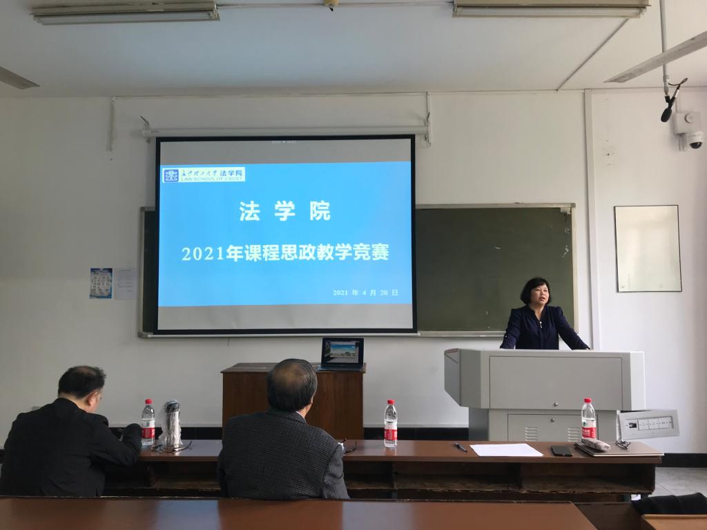 为贯彻落实《关于深化新时代学校思想政治理论课改革创新的若干意见》和《高等学校课程思政建设指导纲要》文件精神,进一步落实“课程思政”工作,法学院于4月20日晚在金盆岭12教316举行了2021年度课程思政教学竞赛。学院教学指导委员会成员杜卫红、高中权、阳明武担任本次比赛的评审专家。青年教师陈骞、王寰参加比赛。全体青年博士进行观摩学习。
