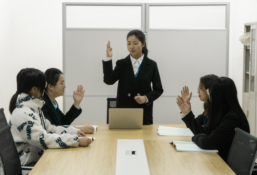 模拟法庭实践内容分为:(1)民事案件、刑事案件、行政案件的模拟;(2)“庭审公开课”与法律实务专家讲座;(3)言辞辩论与模拟法庭竞赛;(4)其他专业实践活动。本科生在读期间,可以根据相关课程的需要于模拟法庭进行线下模拟实验,主要是各类诉讼案件的模拟,学生需结合具体案情进行分工与合作,展开真实案件模拟,以第一人称视角感受法律职业特色,体验真实法庭氛围,探究案件争议焦点,找寻法律魅力。